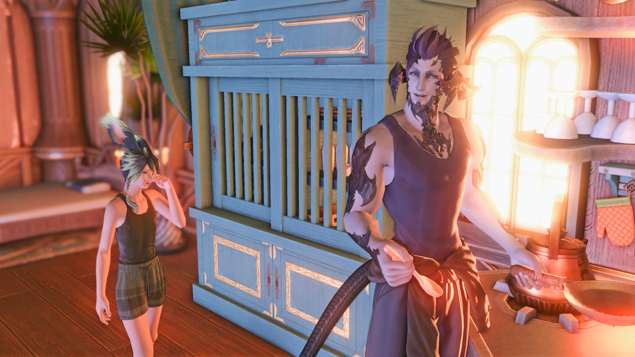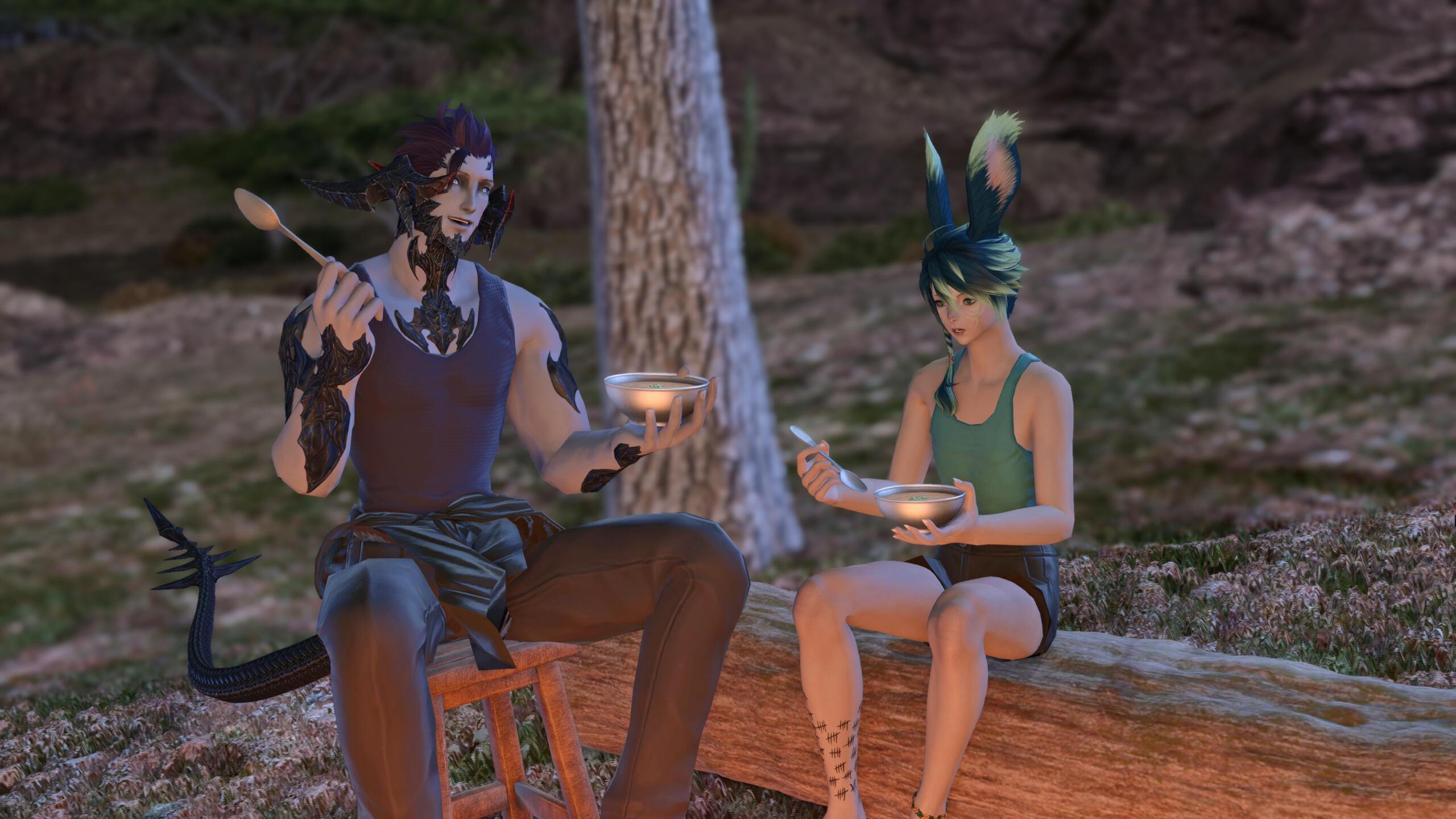 "I found a remote mountain peak in Yanxia and built a little house. And I just… lived, for a while. Hunted and foraged. Looked after my chocobo and some ducks and an aldgoat. Wrote a bit, read a bit, made things in my workshop. A simple, unhurried life."